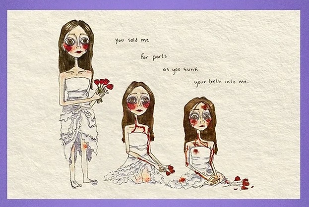 My biggest inspirations in all forms of art came from (of course) Tim Burtons, and Neil Gaiman's artistic style. I absolutely adore movies such as Coraline, Corpse Bride and Edward scissor hands. Those were the initial inspiration of just wanting to encompass the feeling those movies gave me into art!